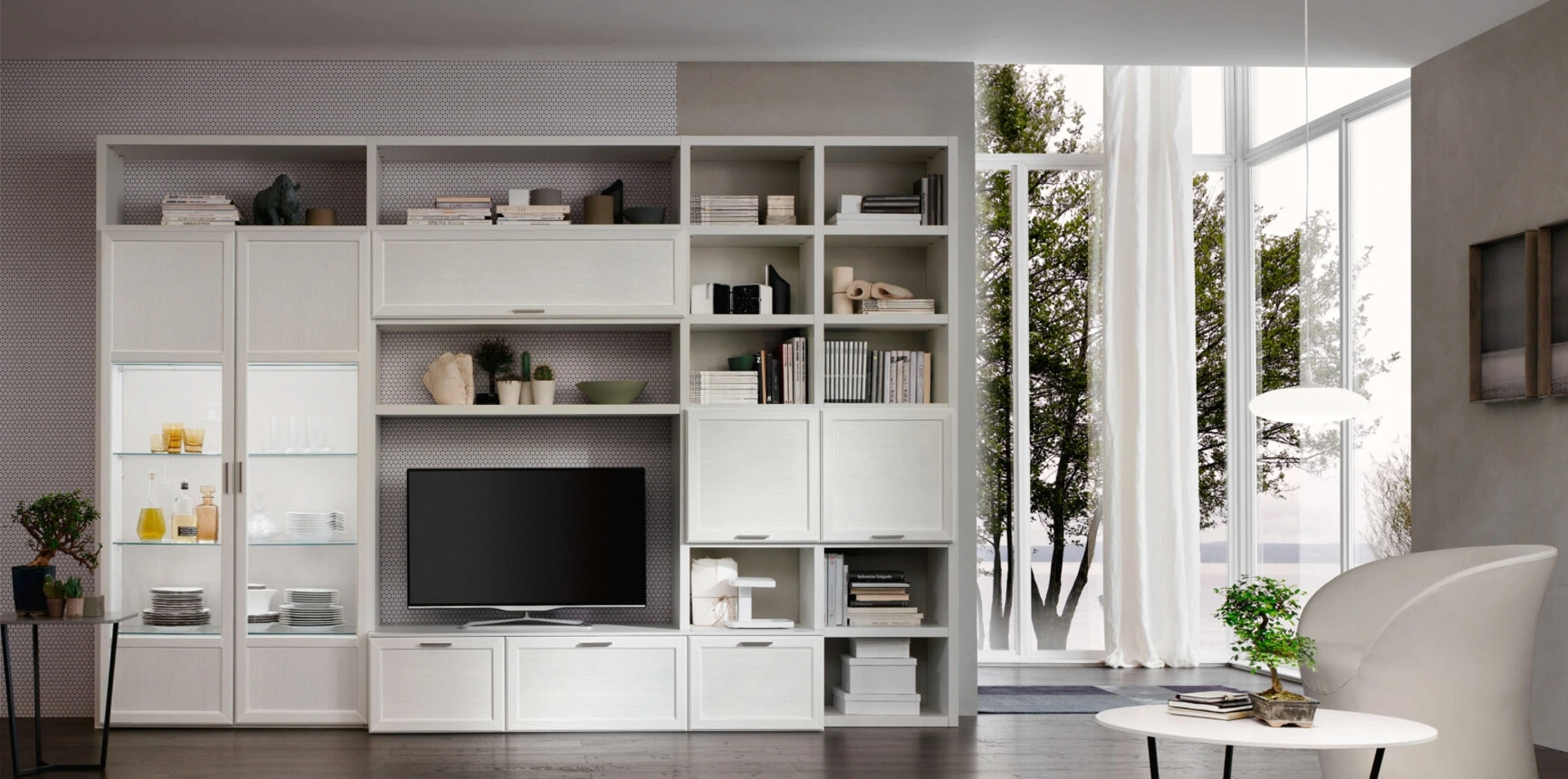 I mobili soggiorno in melaminico dalle linee classiche come il modello nell'immagine sono davvero versatili e capaci di allestire il living usufruendo al meglio di ogni angolo. Maronese mette a disposizione innovativi modelli di mobili soggiorno, diversi per stile e conformazioni, texture e elementi: scopri nel nostro showroom l'Arredamento Casa delle migliori marche. Dato che il soggiorno deve essere uno spazio agevole e bello da vedere, sono necessari alcuni arredi belli e funzionali come le Pareti Attrezzate. La Parete Attrezzata Gardenia Comp GA0018 di Maronese nell'immagine è una tra le più originali soluzioni d’arredo sul mercato: componibilità personalizzabile e le varie opportunità di progettazione la rendono bella e funzionale.
