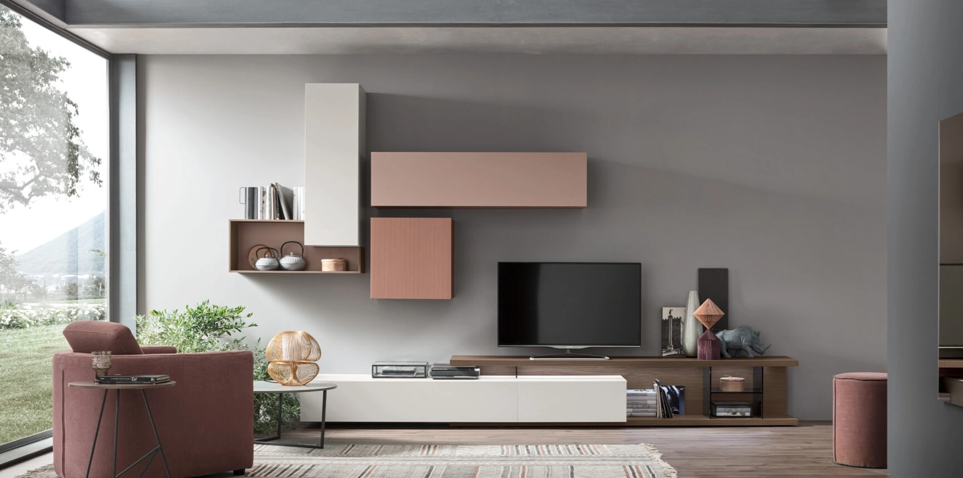 Questa parete attrezzata è una delle soluzioni del marchio e ti consentirà di progettare la zona giorno seguendo le più particolari esigenze abitative. Le Pareti Attrezzate hanno assunto un posto di primo piano nella zona giorno delle nostre case: sono mobili plurifunzionali e salvaspazio sempre realizzabili su misura per te. Attraverso un gioco dinamico di accostamenti fra elementi a giorno o vani chiusi, le Pareti Attrezzate moderne arredano il living sfruttando bene ogni spazio.