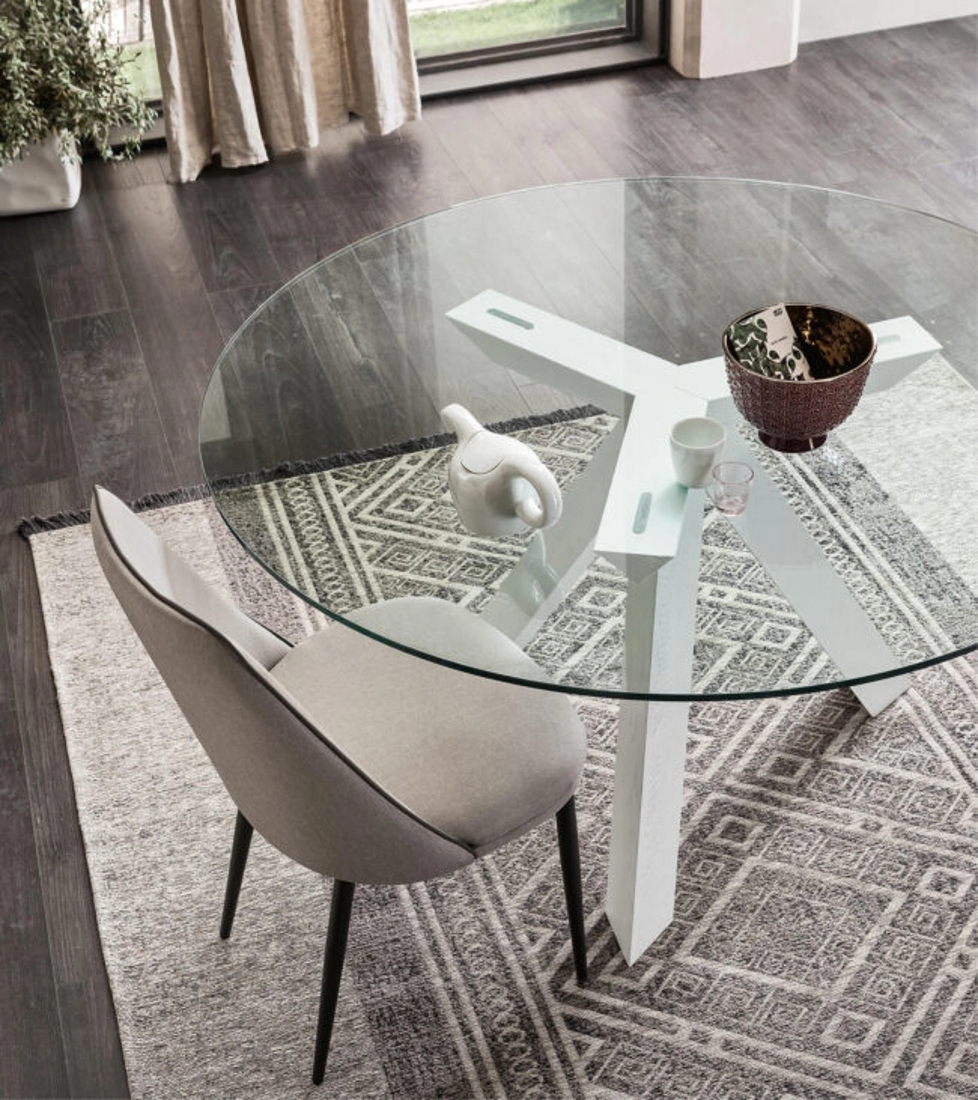Tavolo rotondo Run di Maronese: con questo modello potrai impreziosire spazi moderni assicurandoti componibilità personalizzabile e la massima personalizzazione dei tavoli fissi. Da noi troverai un ricco catalogo di mobili e oggetti accessori in vetro dei migliori produttori, ideali per completare i tuoi spazi. Contattaci per informazioni e preventivi o puoi vedere in negozio le altre più belle proposte da pranzo in vetro di Maronese, esempio di tutta la qualità assicurata dal marchio.