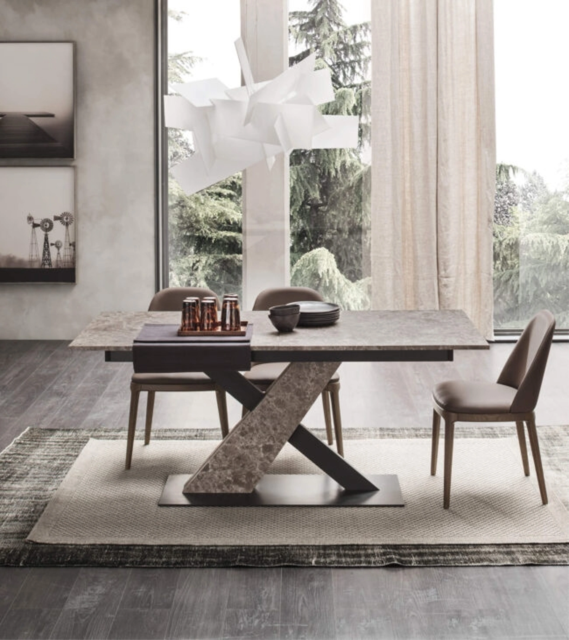 Tavolo allungabile Venus di Maronese: realizzato in materiali pregiati è caratterizzato dalle linee decise del top e da un basamento ricercato ed elegante. Un modello come quello in foto, in abbinamento alle giuste sedie, saprà completare lo stile delle stanze di casa dedicate per eccellenza alla convivialità. Ideali per dare vita a degli abbinamenti unici con sedie e complementi design, i Tavoli allungabili del brand sono soluzioni tra le più belle in commercio, ideali per il living e la zona cucina. Se vuoi un tavolo da pranzo di grande design, contattaci e ricevi informazioni e preventivi sul modello mostrato in foto.